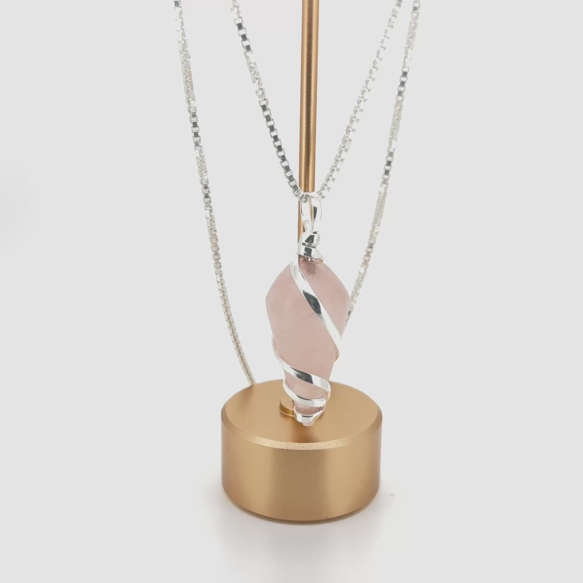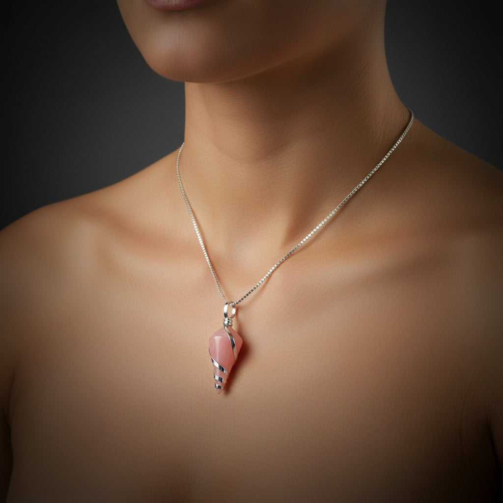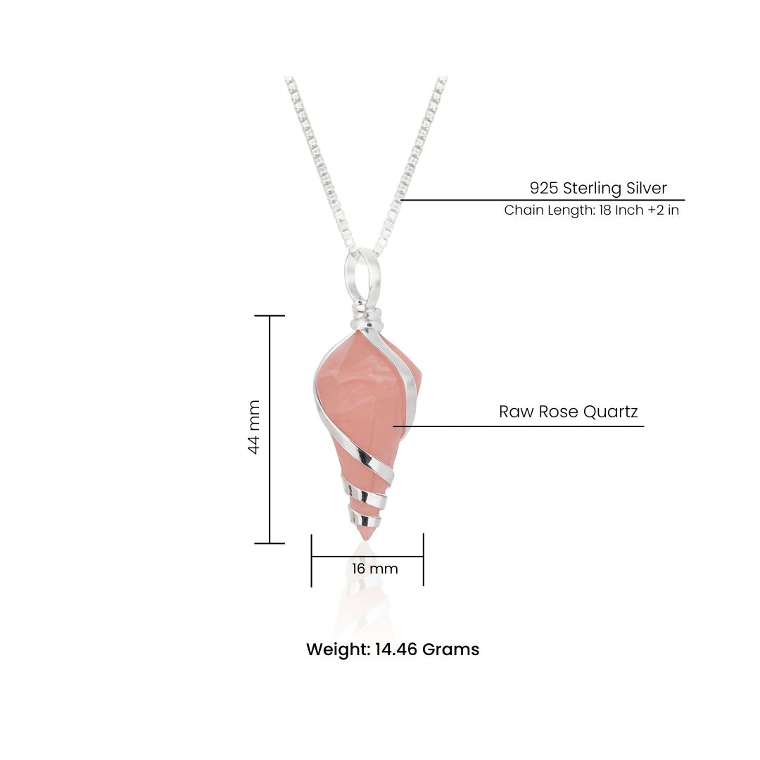 قلادة من الكوارتز الوردي الطبيعي مطلية بالفضة الإسترليني 925 – قلادة علاجية من الكريستال الخام