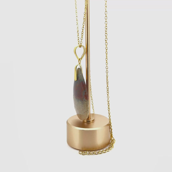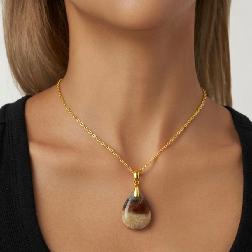 Natural Plume Opalized Wood Cabochon Pendant – 18K Gold Vermeil