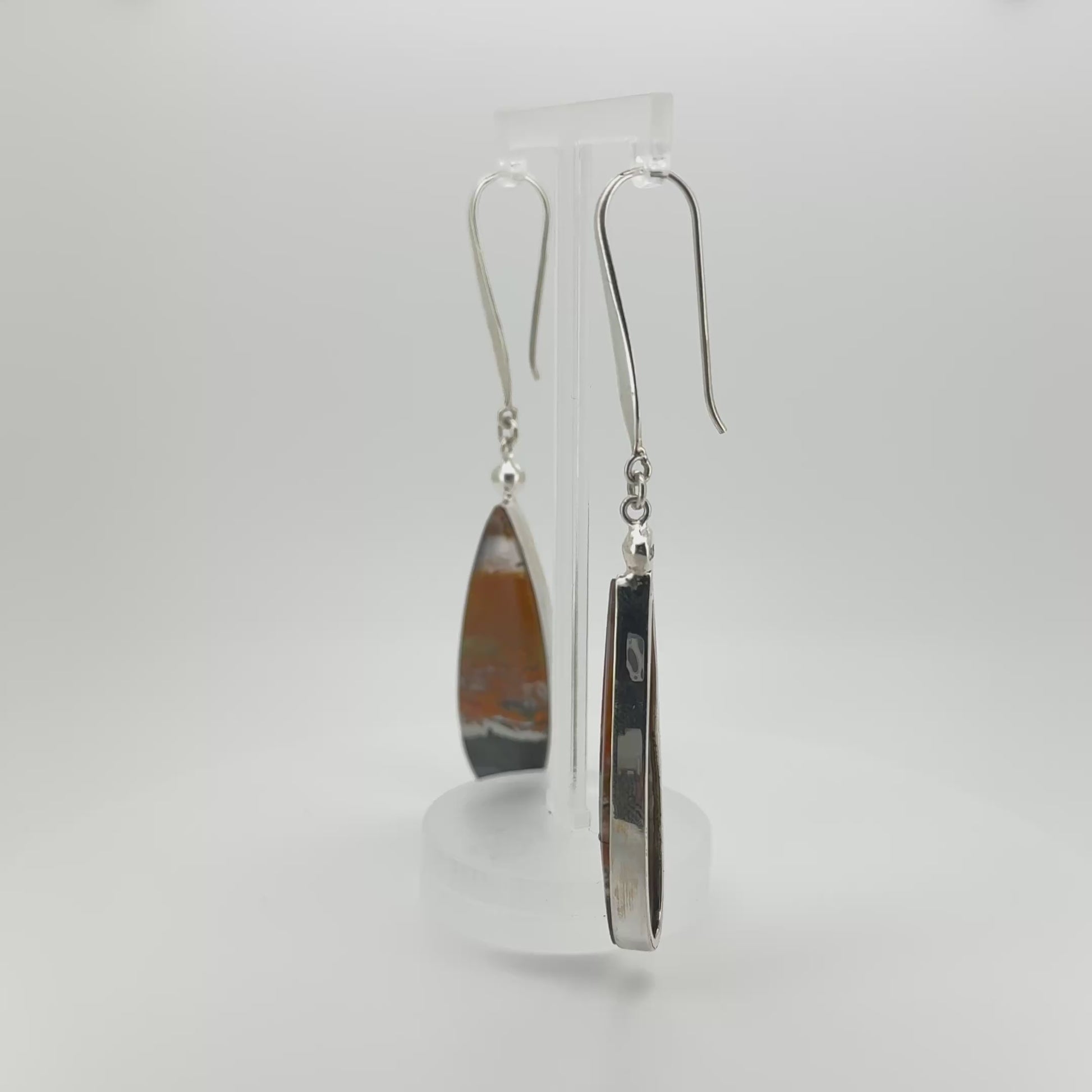 Natural Opalized Wood Jasper Earrings - 925 Sterling Silver