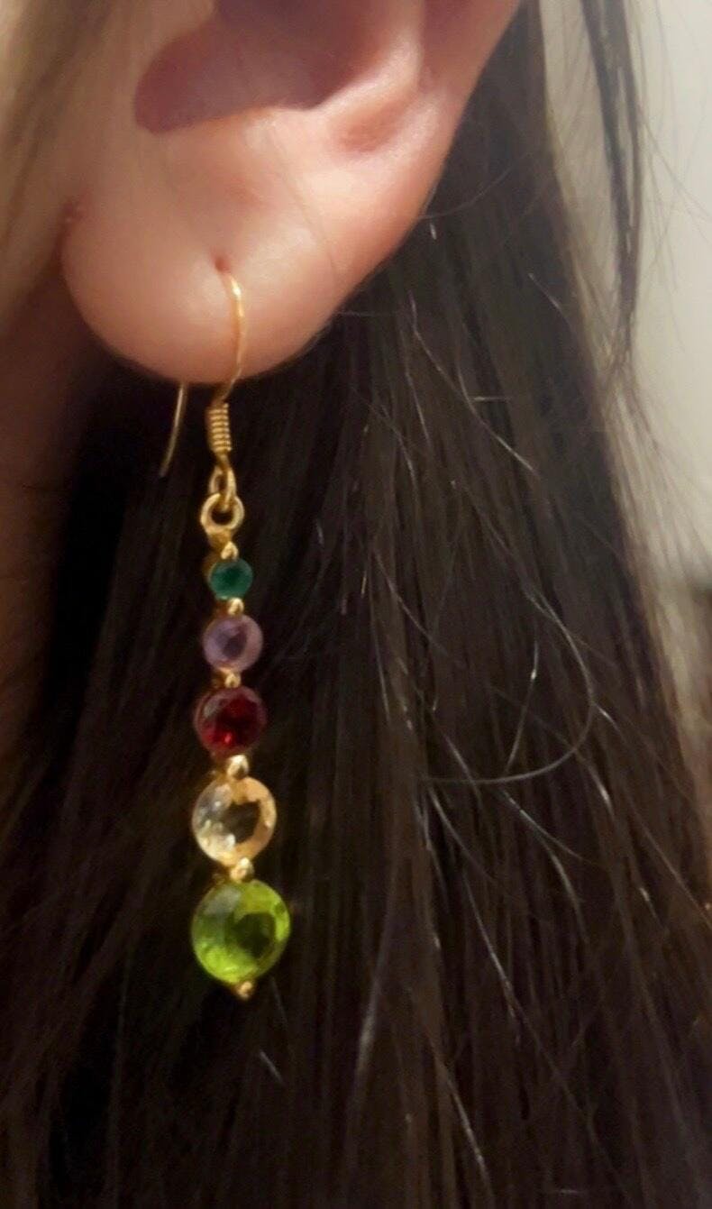 Multi Gemstone Drop Earrings – 18K Gold Vermeil – Citrine, Garnet, Amethyst, Green Onyx & Peridot