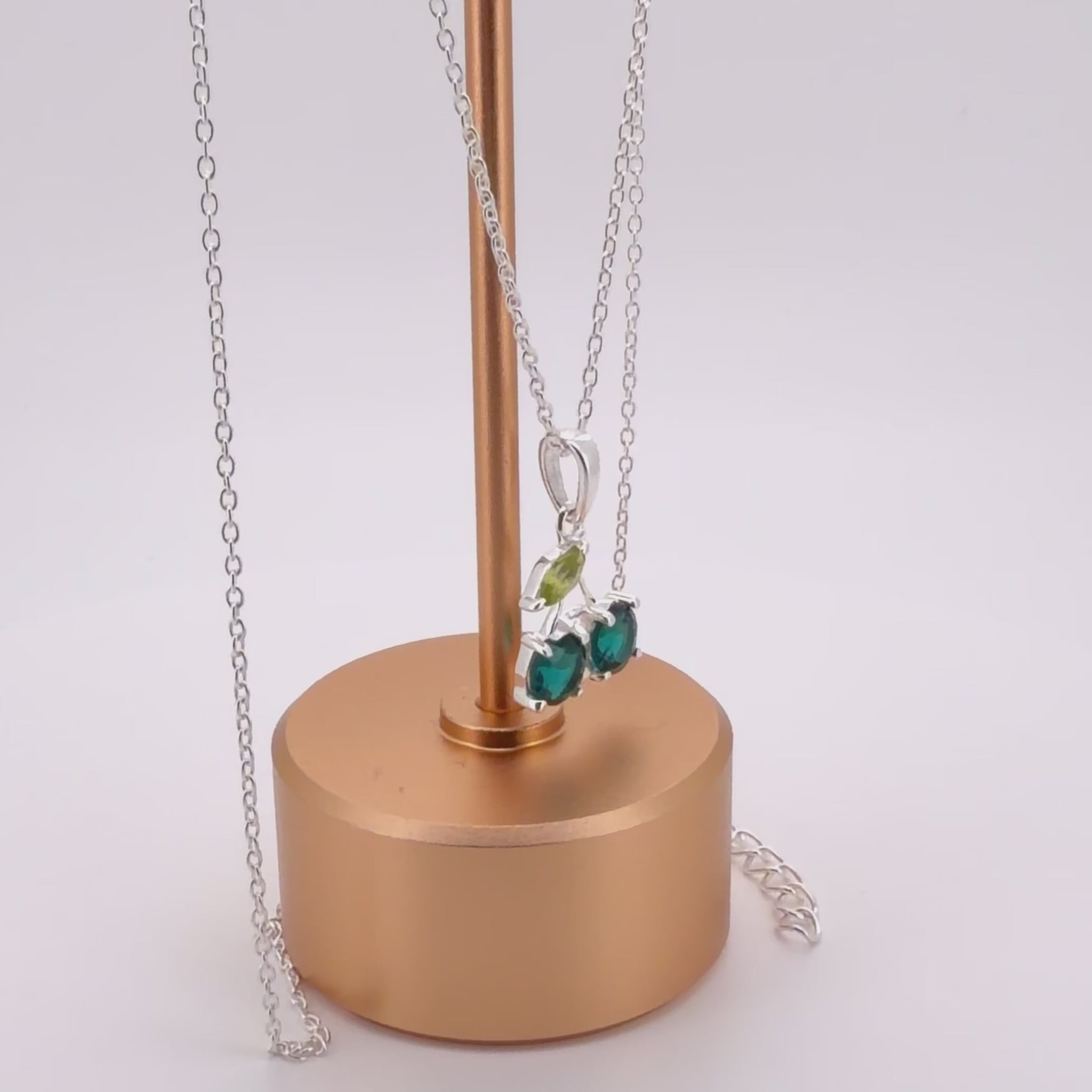 Add a playful touch of elegance to your look with this exquisite 925 sterling silver cherry pendant, featuring two vibrant natural blue zircon gemstones and a delicate leaf of natural peridot. Each gemstone is ethically sourced and expertly hand-set to capture the brilliance of nature’s finest hues — the deep oceanic sparkle of blue zircon paired with the lush green glow of peridot.