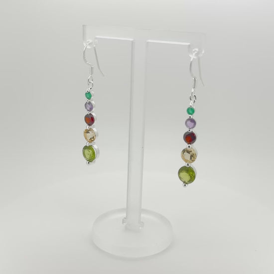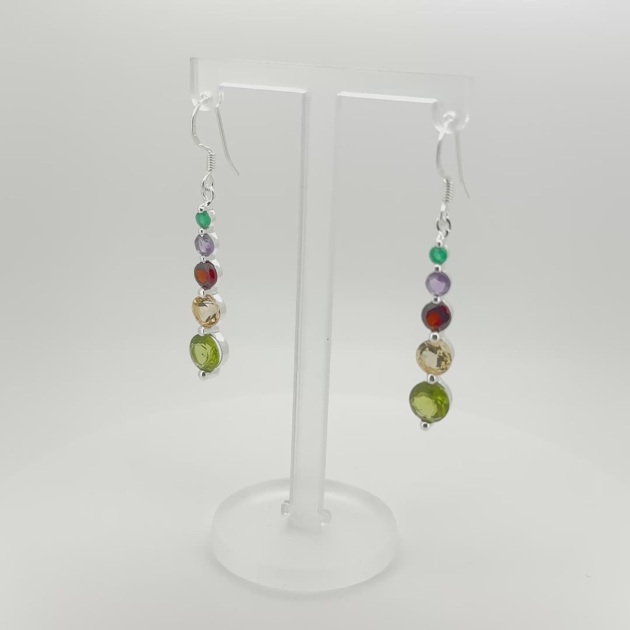 Multi-Gemstone Earrings – Peridot, Citrine, Garnet, Amethyst & Green Onyx