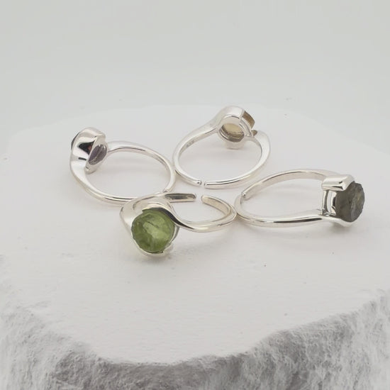 Embrace nature’s radiant energy with our Natural Gemstone Wave Ring, exquisitely handcrafted in 925 Sterling Silver. Designed to celebrate the beauty and power of natural stones, each ring features a unique gemstone — Labradorite, Peridot, Rose Quartz, or Citrine — beautifully set in an elegant wave-inspired band that symbolizes flow, balance, and transformation.