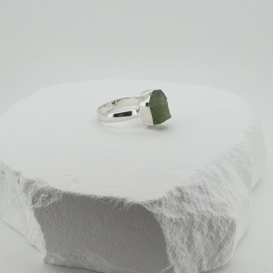Natural Raw Peridot Ring In Adjustable Sterling Silver