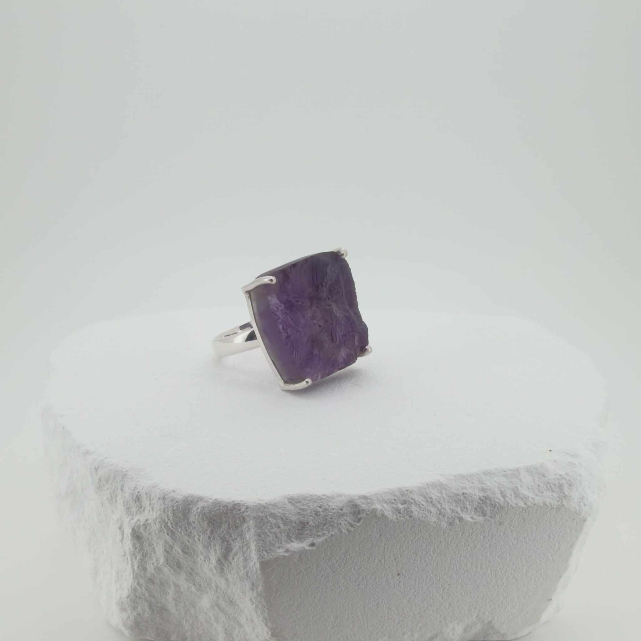 Natural Raw Amethyst Adjustable Ring in Sterling Silver
