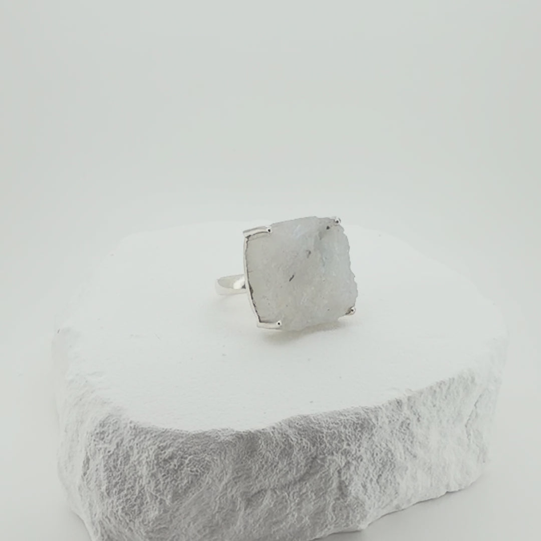 Natural Raw Moonstone Adjustable Ring in Sterling Silver
