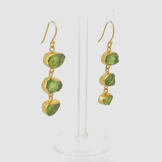 Triple Raw Peridot Drop Earrings – Handmade in Gold Vermeil