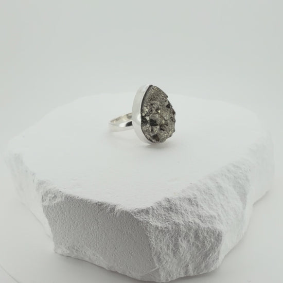 Raw Pyrite Teardrop Adjustable Ring in Sterling Silver