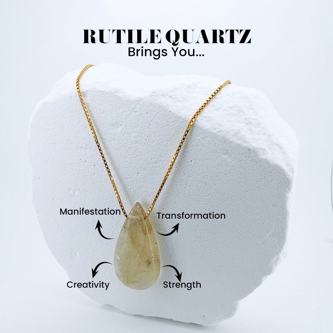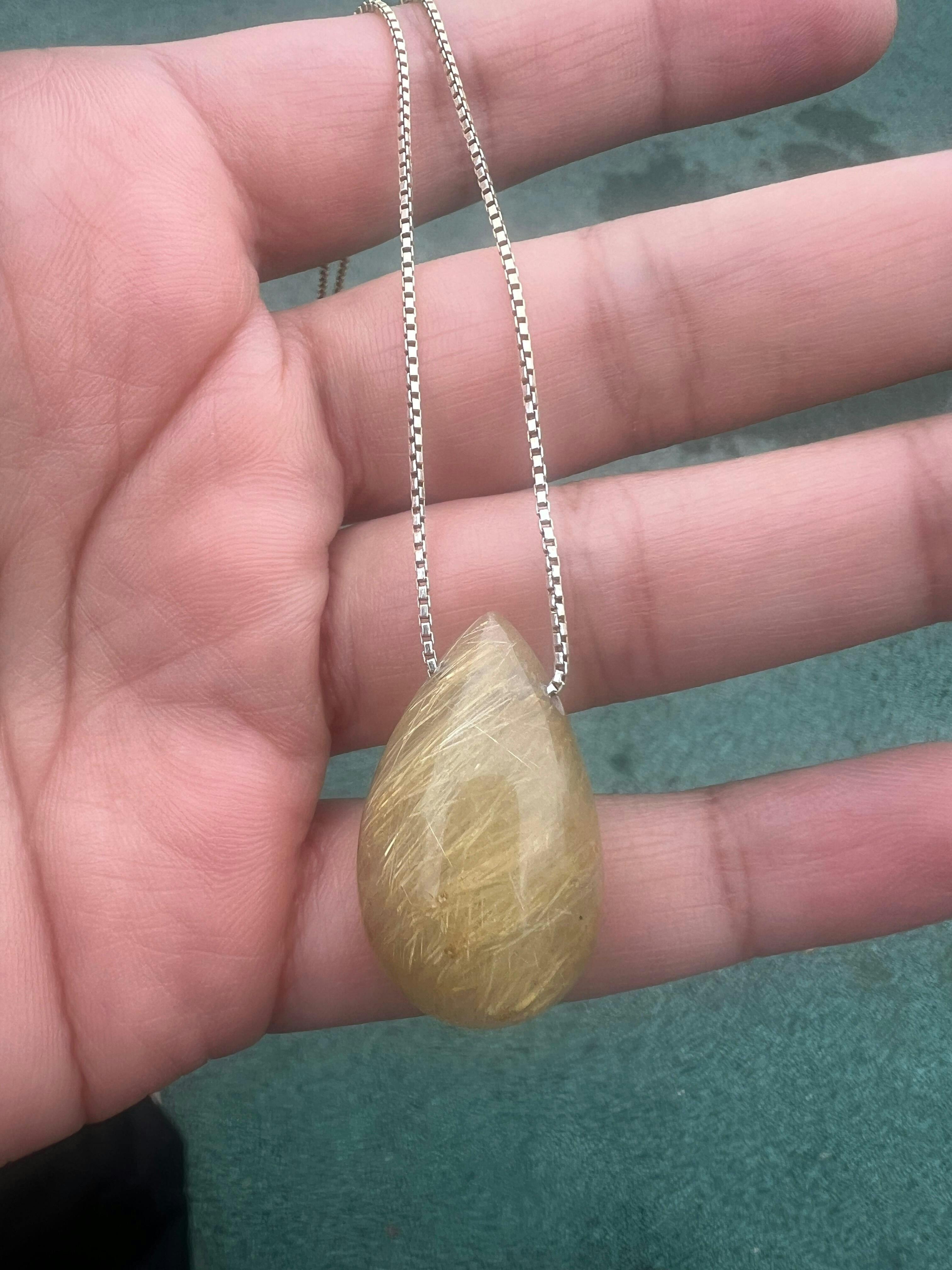 Rutile Quartz Teardrop Pendant - 18K Gold Vermeil